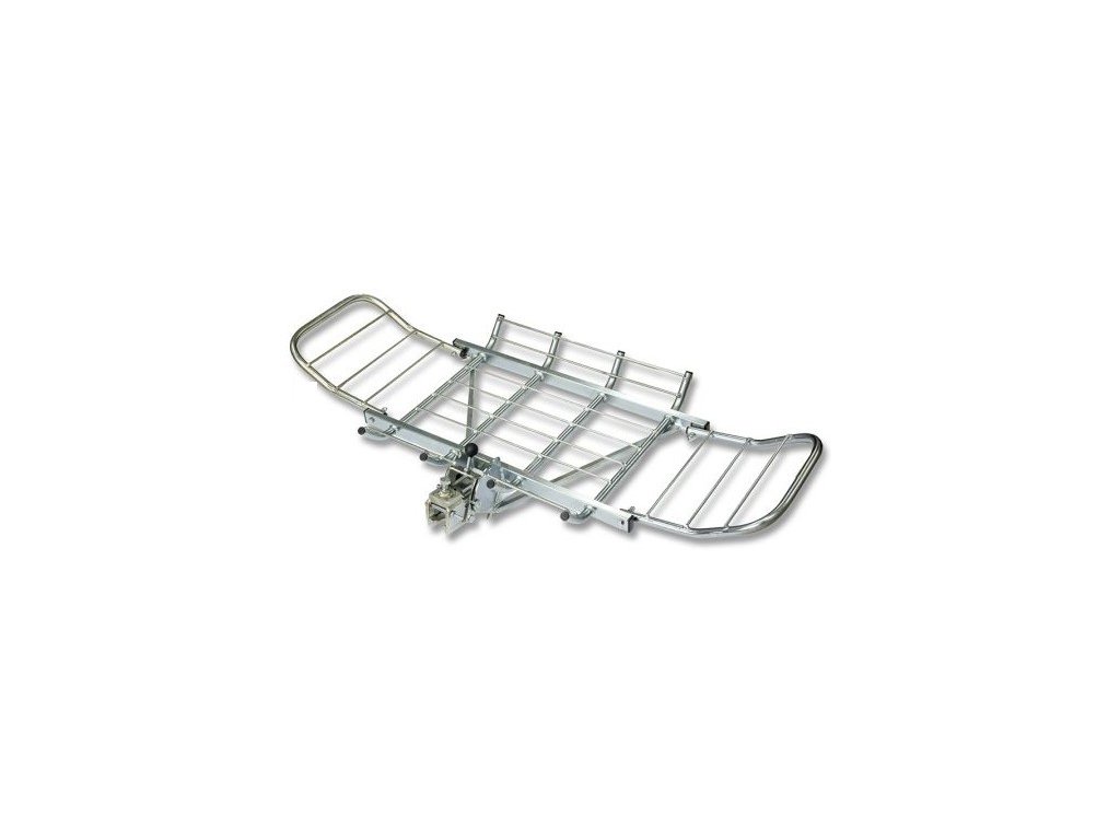 Zadný nosič na prepravu zveri, materiál: pozinkovaná oceľ, nosnosť: 150 kg, hmotnosť: 14,5 kg, zložené: 82 x 70 x 20 cm, rozložené: 145 x 70 x 20 cm