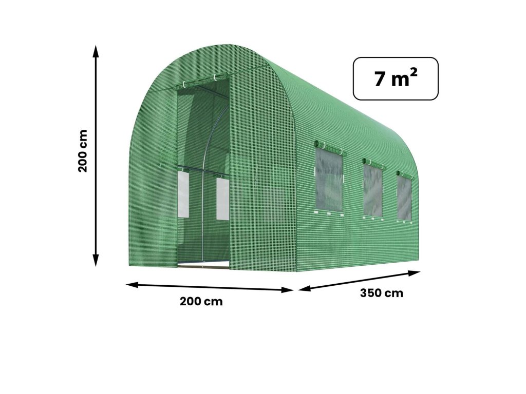 S rozmermi 2 m x 3,5 m (7 m²) a výškou 2 m poskytuje tento fóliovník dostatočný priestor na pestovanie rôznych druhov plodín. Navyše je dostatočne priestranný na pohodlnú starostlivosť o rastliny. Celková hmotnosť 26 kg zabezpečuje stabilitu a odolnosť voči poveternostným vplyvom.