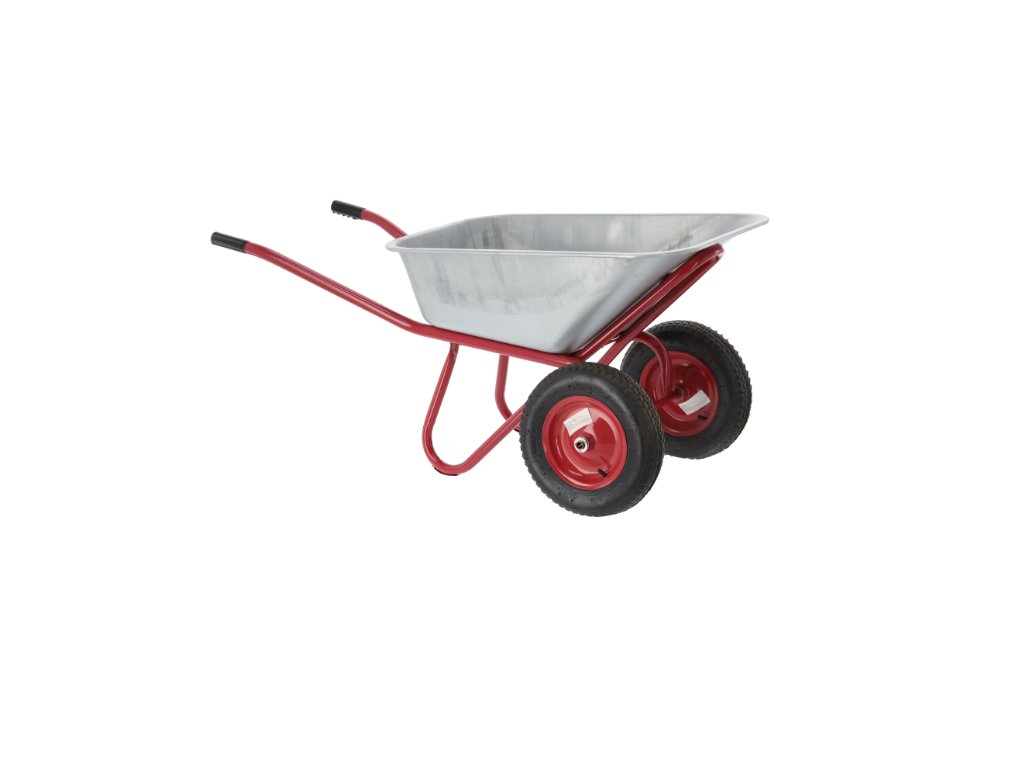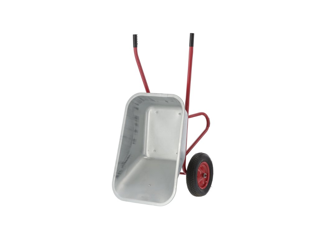 Korba vozíka je vyrobená z pozinkovanej ocele, ktorá je odolná voči vlhkosti a bežnému mechanickému namáhaniu. Stabilitu zabezpečuje lakovaný oceľový rám, navrhnutý tak, aby zvládal plné zaťaženie. Konštrukcia je vhodná na pravidelné používanie.